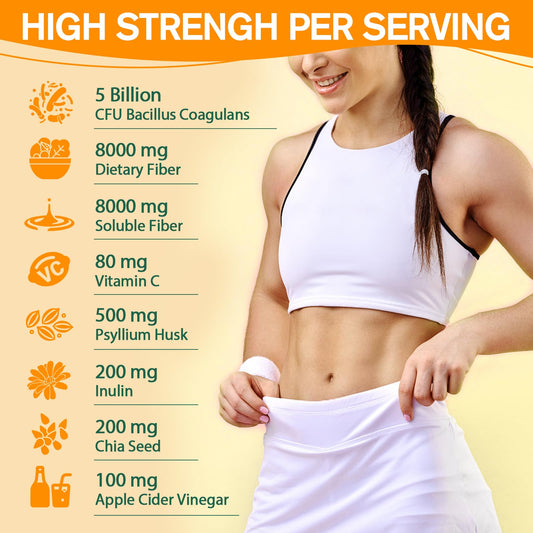 9-in-1 Probiotic Fiber Gummies for Adults & Teens 16G Fiber per Serving, Psyllium Fiber Supplement with 5 Billion CFU Bacillus Coagulans, Inulin, ACV for Digestive, Gut & Immune Wellness - 60 Gummies