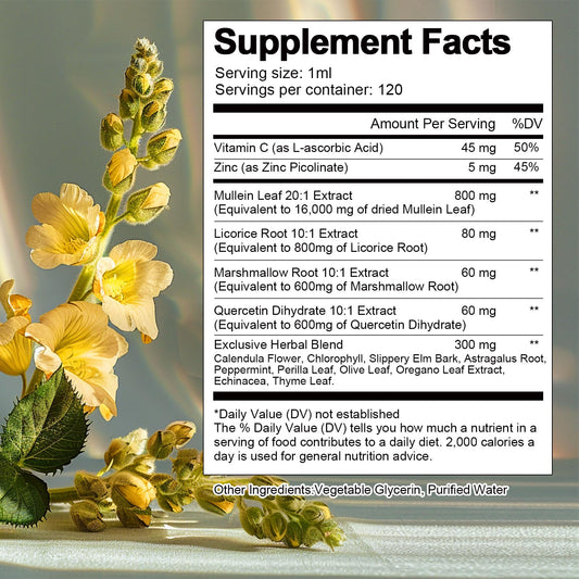 16-in-1 Mullein Drops for Lungs with 16000MG Mullein Leaf per Serving, High Potency Mullein Drops with Licorice Root, Marshmallow Root for Lungs, Respiratory and Immune Wellness, 4 FL.OZ