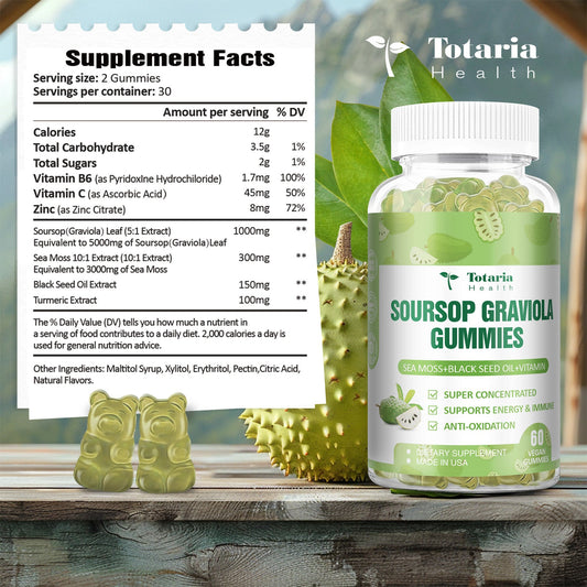 Soursop Graviola Sea Moss Gummies - 5000mg Soursop Oil Leaf with 3000mg Sea Moss, 150mg Black Seed Oil - Immune Support, Antioxidation - Sour Sop Multivitamin Graviola Leaves Edible Supplements