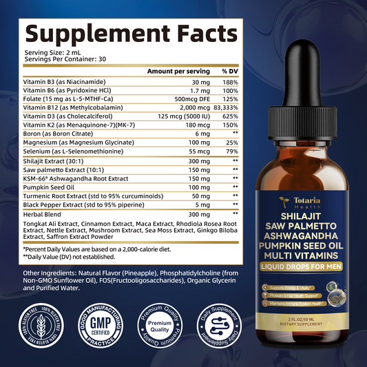 Shilajit Liquid Drops with Saw Palmetto .Ashwagandha .Pumpkin Seed Oil .Sea Moss,Multivitamin - Shilajit for Men - Support Prostate Health & Hair,Energy & lmmune Function - 2FL - Pineapple Flavor