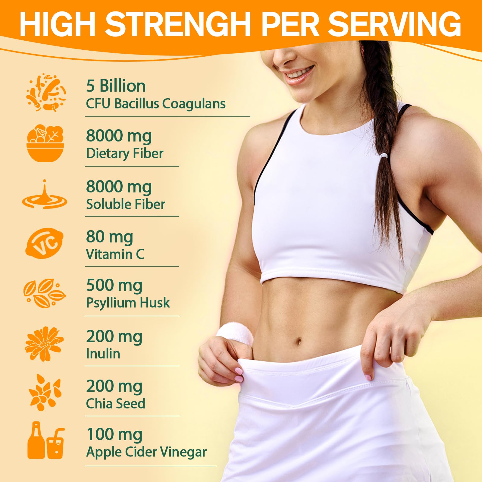 - Probiotic Synergy: Extra strength fiber supplement. Totaria fiber gummies contain 5 billion CFU of Bacillus coagulans per serving. a potent probiotic strain that works synergistically with the soluble fiber to enhance digestive wellness. This beneficial bacteria helps to crowd out harmful microorganisms. improve nutrient absorption. and support the immune system. making our gummies an excellent choice for those seeking a natural and effective way for bettrer gut health.