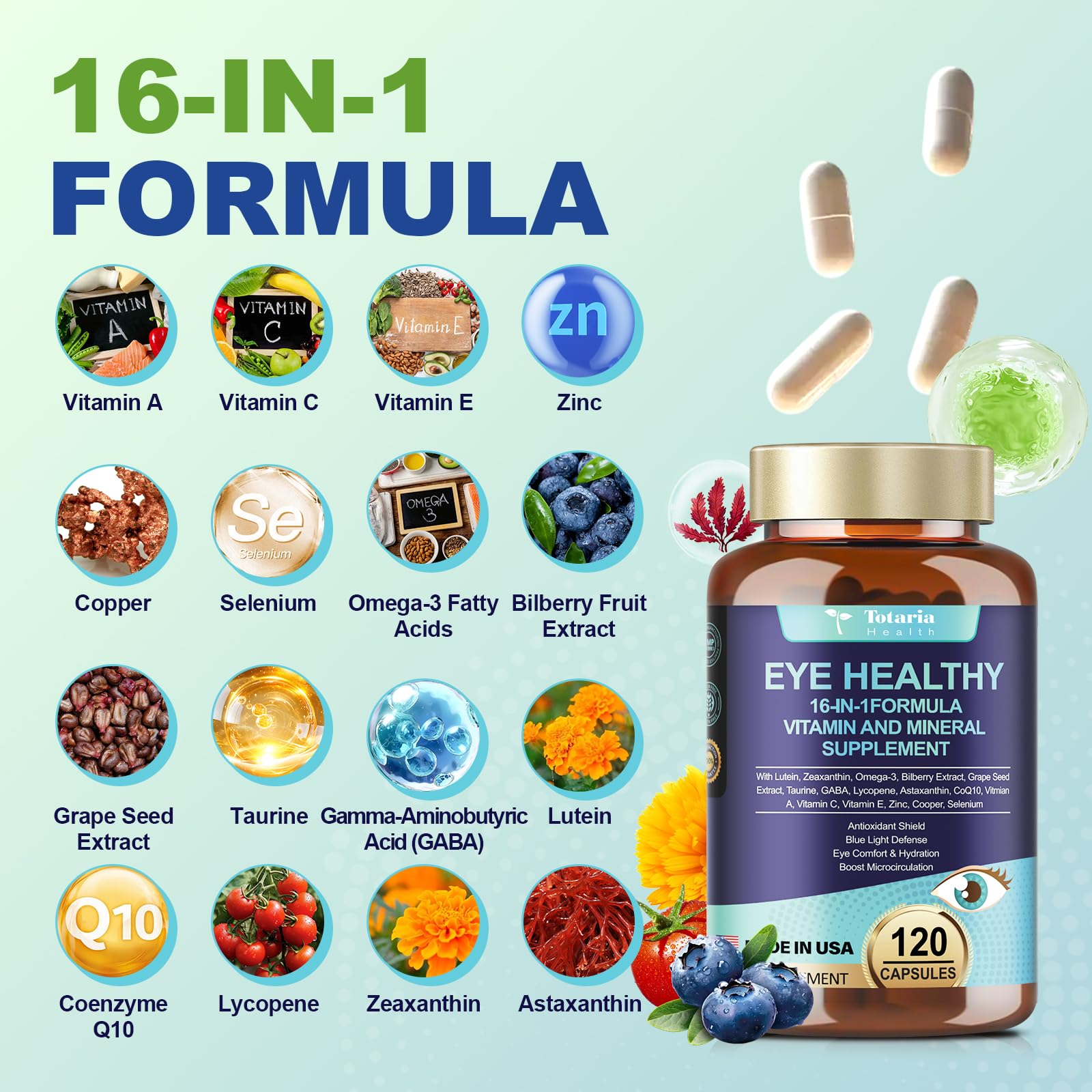 - 【Antioxidant Synergy Matrix】 Delivers 16 essential nutrients including zinc. selenium. and lycopene in precise ratios to support the eyes' antioxidant response to environmental factors.