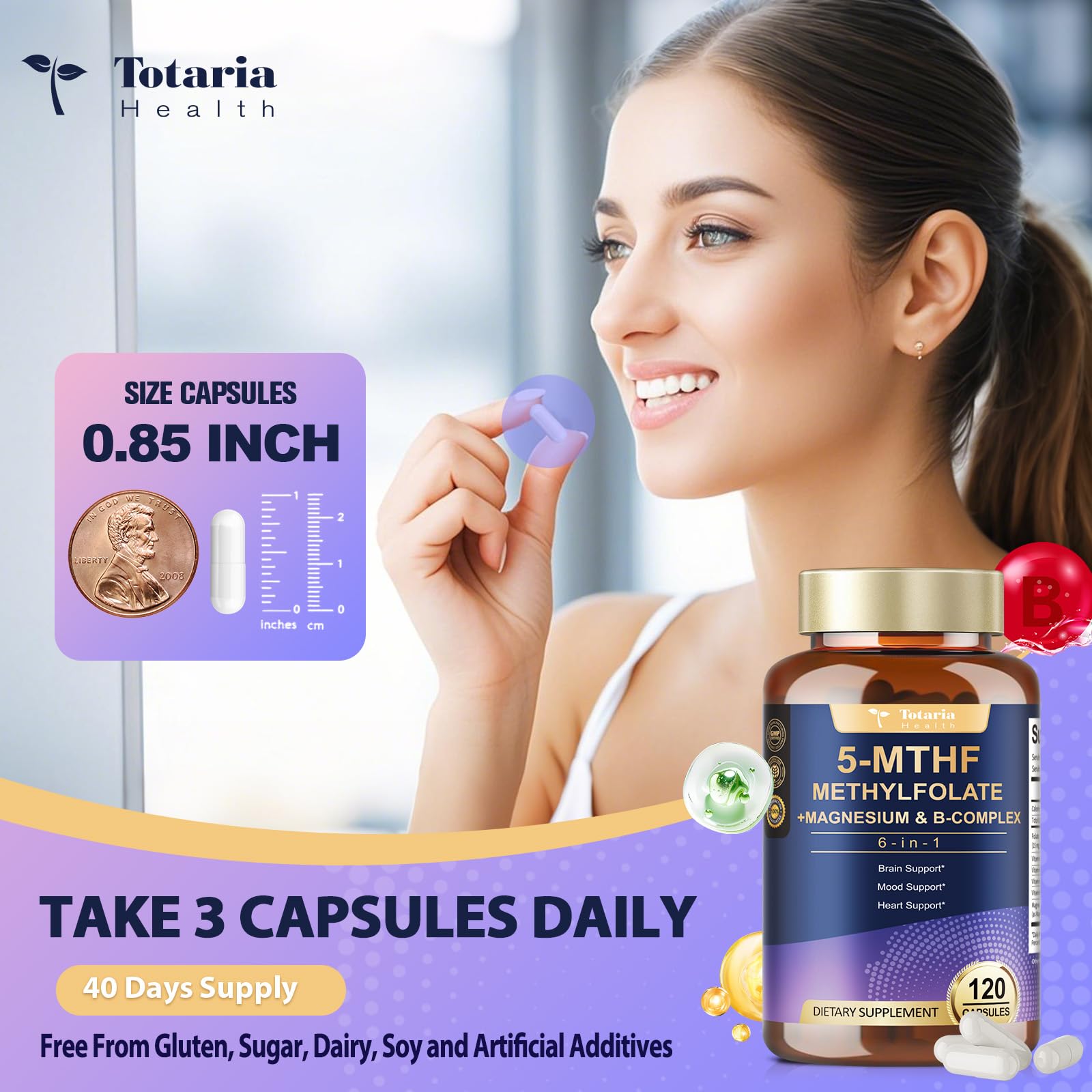 - 【Advanced Metabolic & Cardiovascular Support】 Precision-formulated to support healthy homocysteine metabolism through methyl-B12 synergy. while supporting cellular renewal efficiency via bioactive 5-MTHF utilization. Totaria's L Methylfolate activates essential enzyme pathways that support systemic metabolic balance and cardiovascular function maintenance.