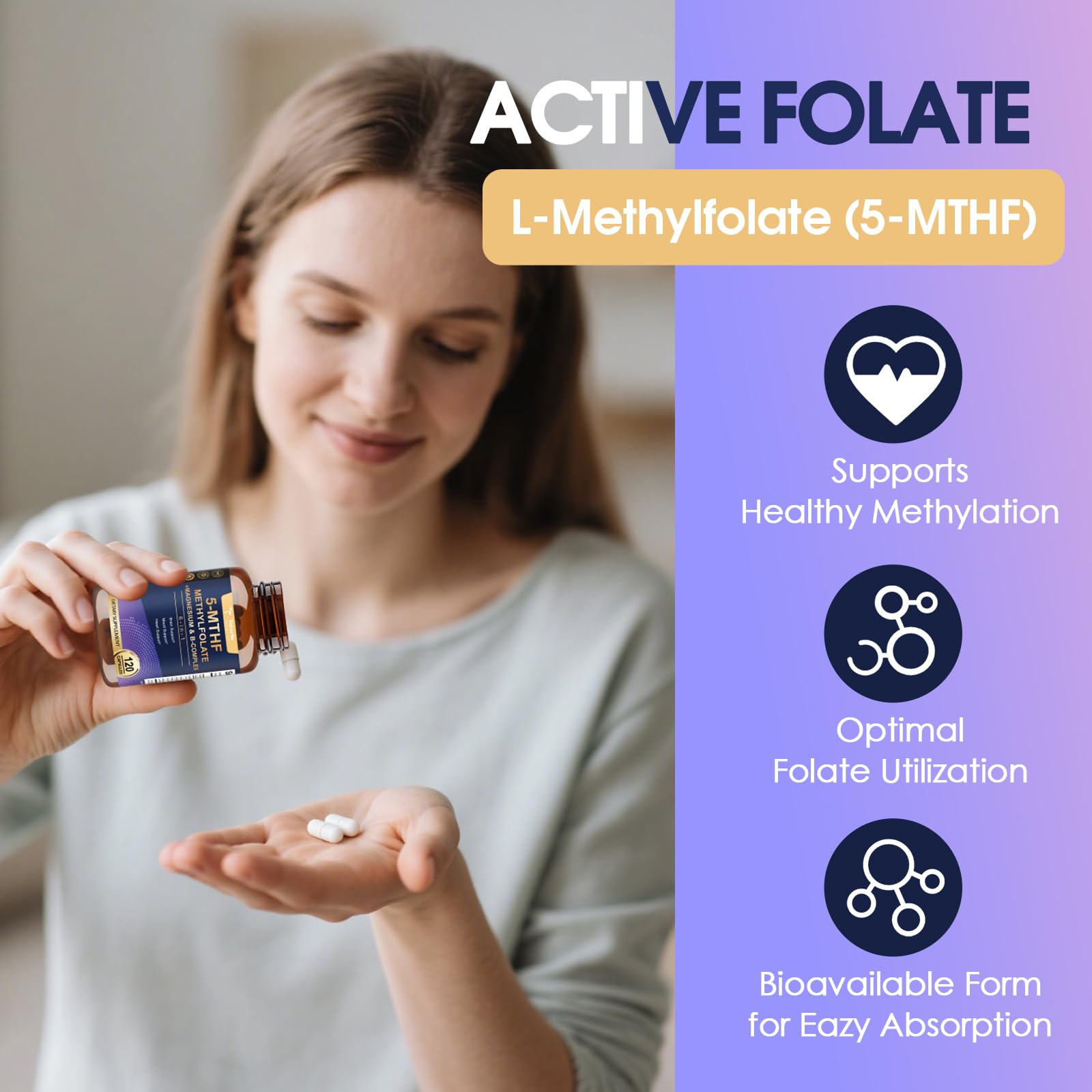 - 【Scientifically-Backed Bioactive Formula】 Features 15mg premium L-Methylfolate (the body-ready folate form) paired with methylated B12 and essential cofactors (B1/B2/B6). Our triple-action complex supports healthy methylation pathways while addressing modern nutritional challenges through clinically-studied nutrient forms.
