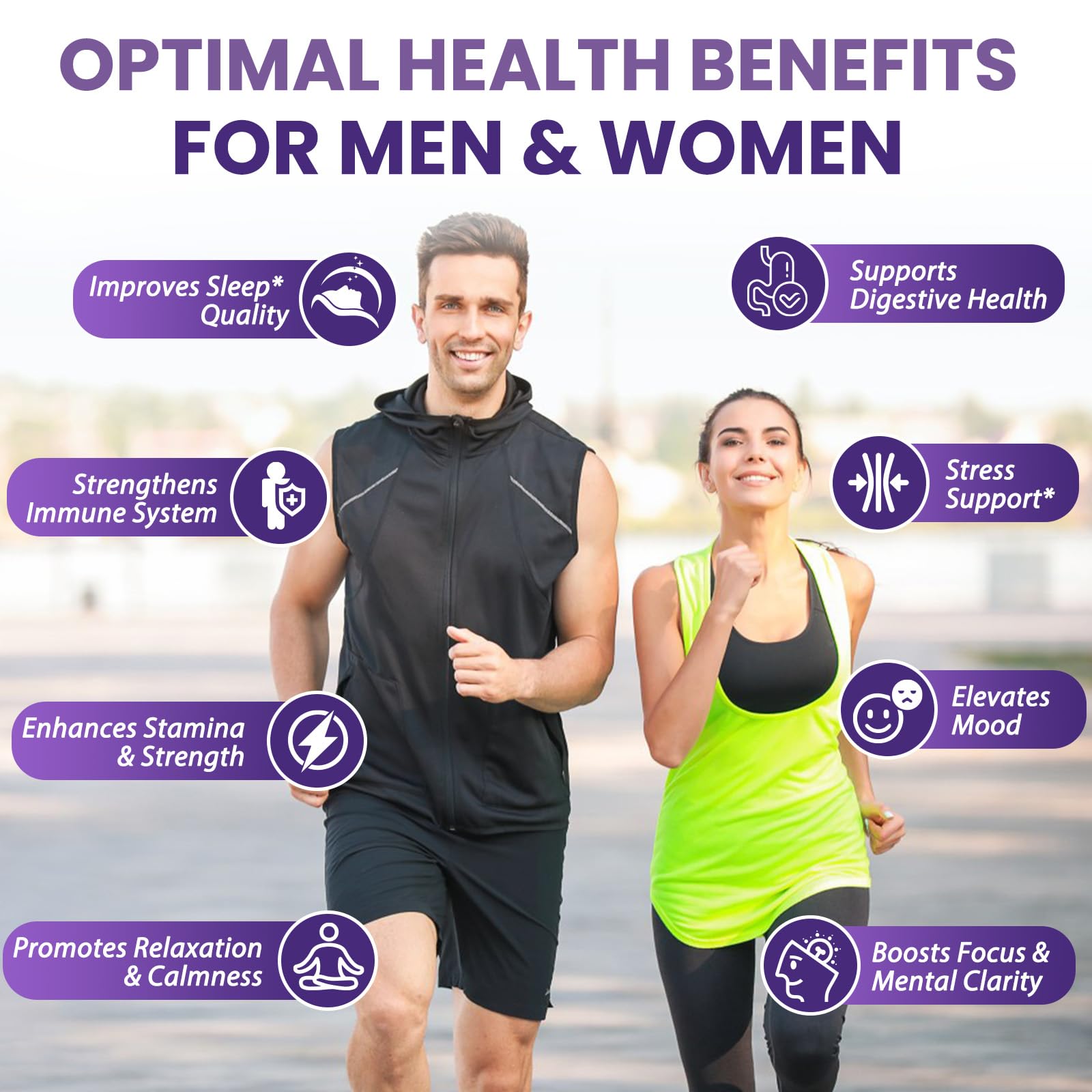 - Mood Support & Focus Enhancement: Ashwagandha. a renowned adaptogen. helps balance cortisol levels. promoting relaxation. improved sleep*. and support stress*. Magnesium citrate and zinc support muscle relaxation and brain health. while L-Theanine fosters calmness and clarity. enhancing focus and mood. Together. these ingredients create a holistic approach to mental well-being.