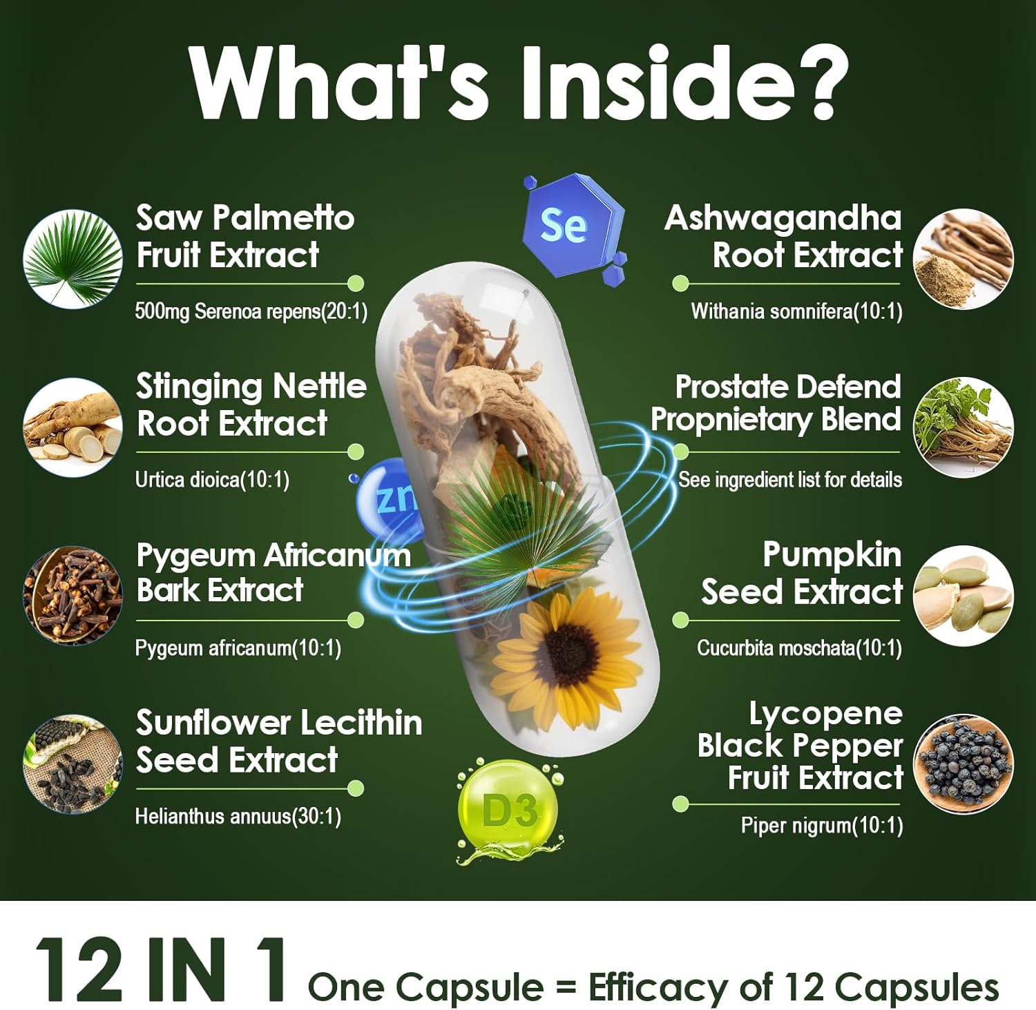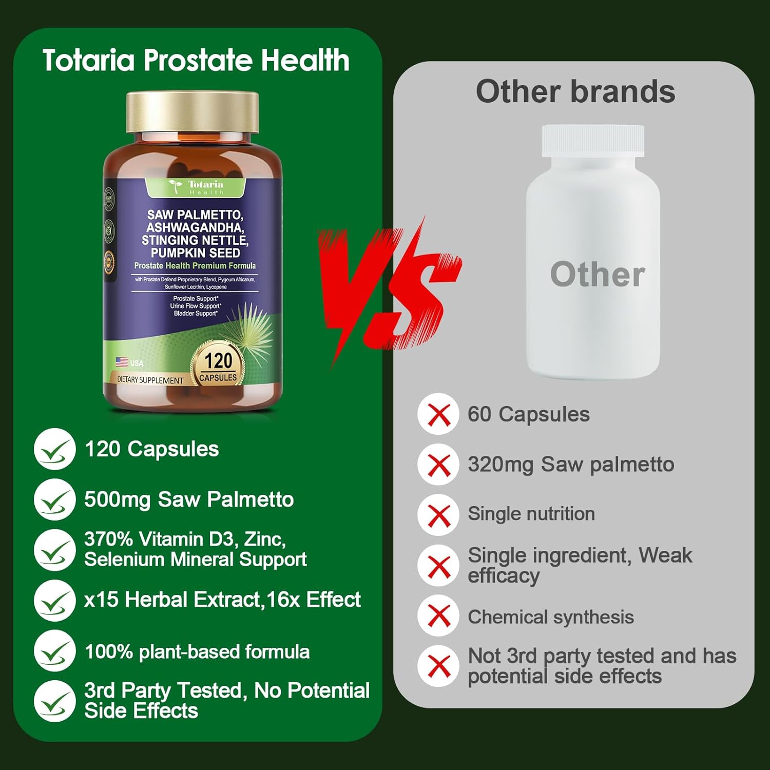 - 15X Formula: 500mg organic saw palmetto fruit extract (containing 85-95% fatty acids). synergistic with 15 herbal essences such as African pygeum/nettle root/pumpkin seed. clinically proven to support urine flow strength (increase urine flow by 27%) and reduce nocturia (83% of users reported improved urination regularity). precisely targeting BPH symptoms such as urinary waiting/weak urination.
