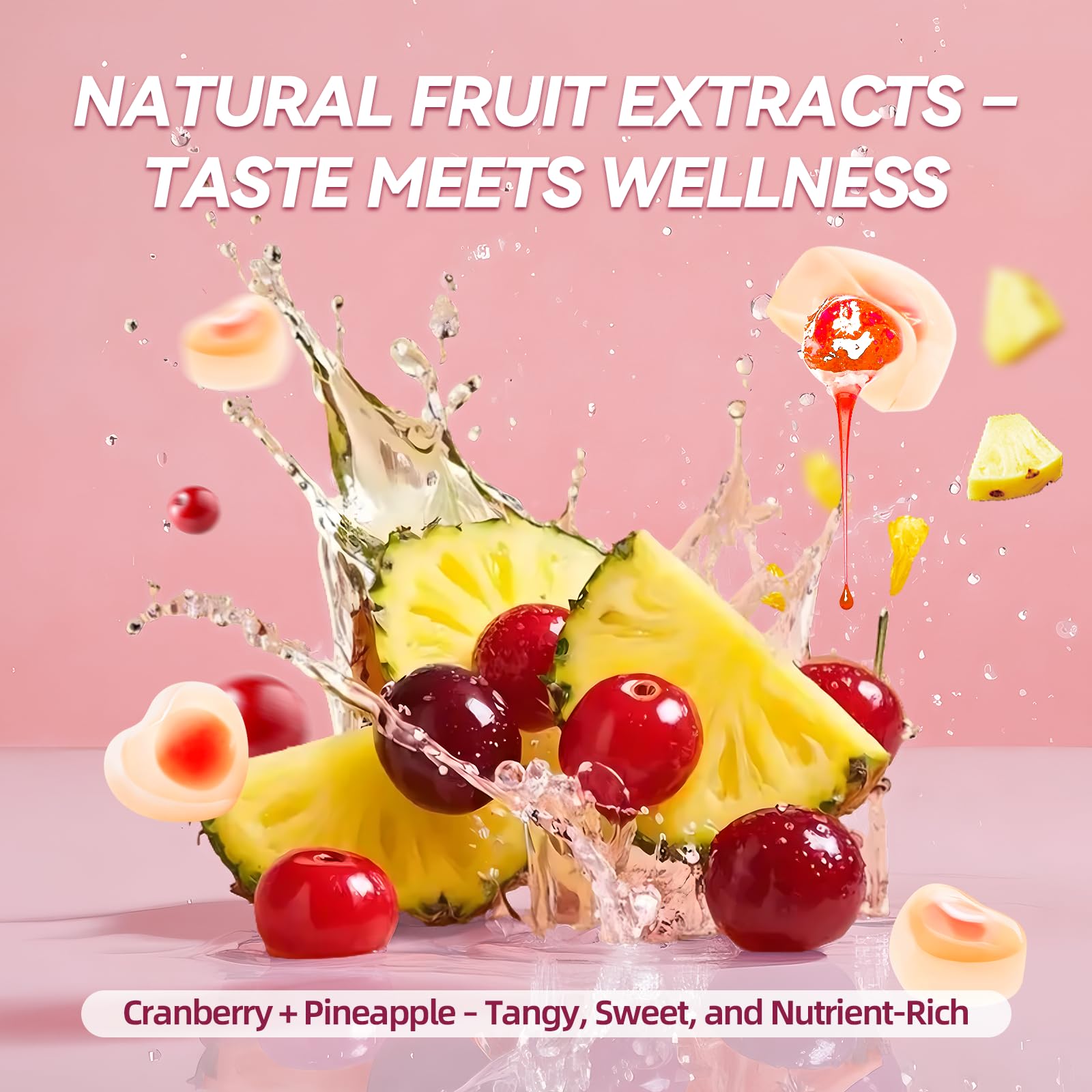 - DELICIOUS. SUGAR-FREE. AND LOW-CALORIE:Enjoy the natural flavors of cranberry and pineapple without the guilt! Our gummies contain 0g added sugar and are low in calories. making them a delicious and healthy choice for your daily routine.